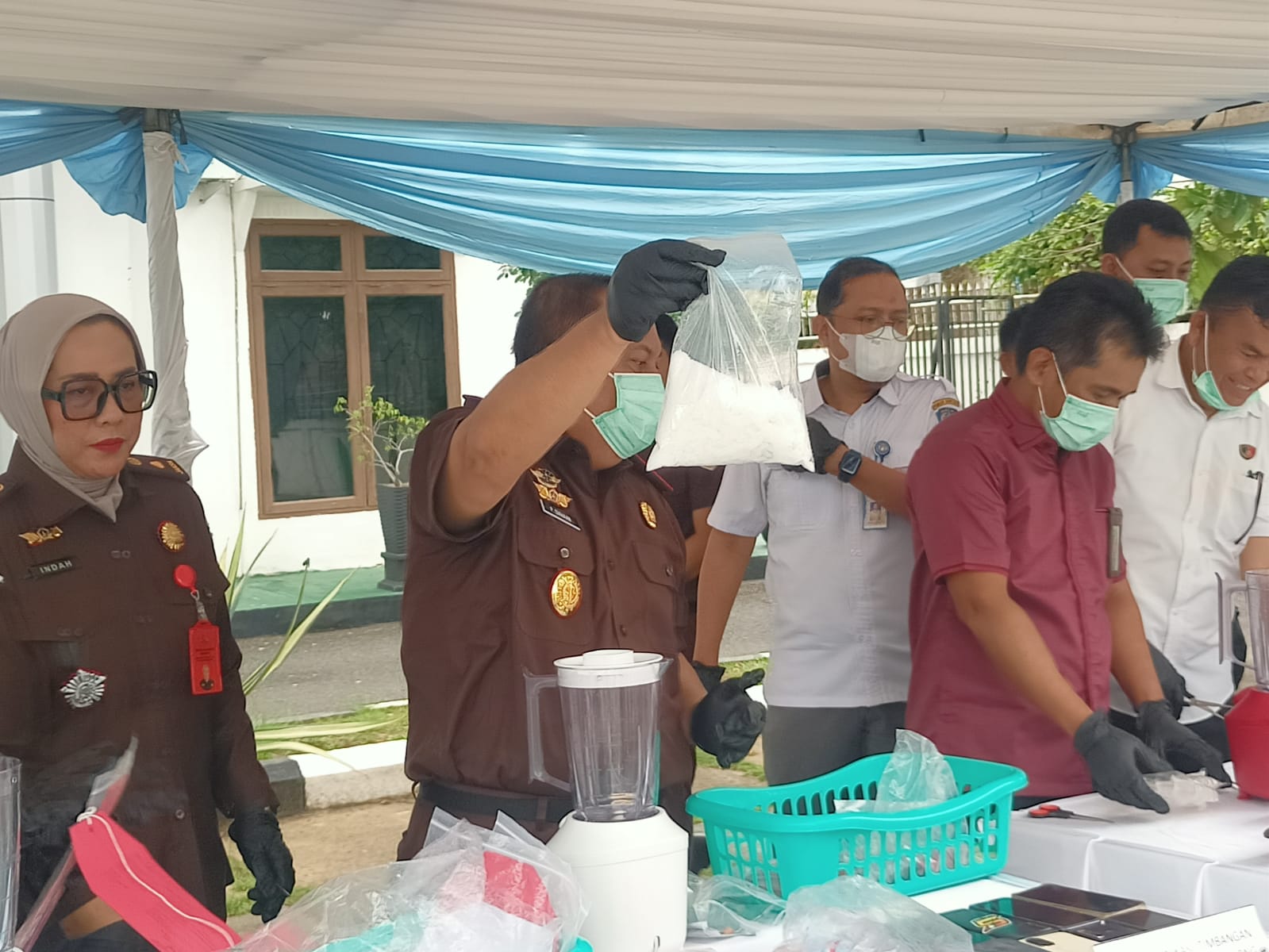 Misalnya untuk barang bukti narkotika jenis sabu dilarutkan ke dalam air kemudian diblander dan langsung dibuang ke septic tank.